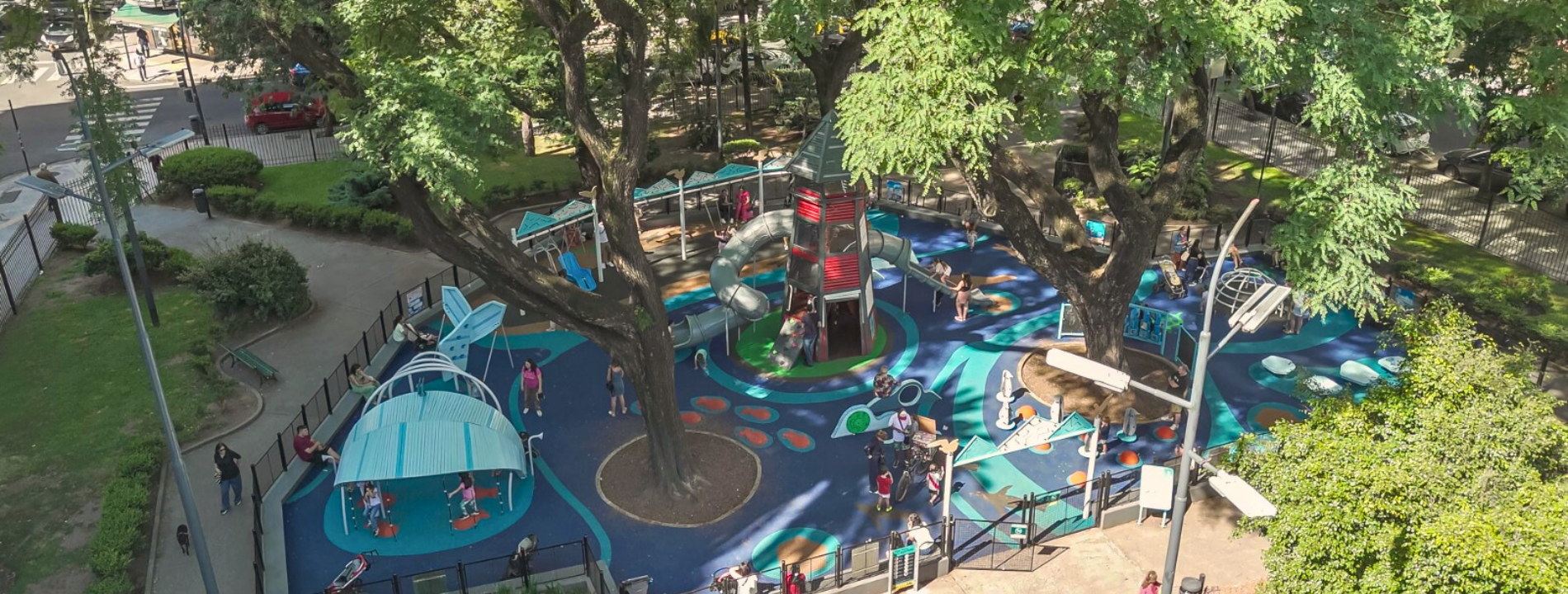 Este patio de juegos de Plaza Alferez Sobral, está ubicado en Scalabrini Ortiz y Salguero y tiene como temática central la Antártida, en homenaje a José María Sobral, el primer argentino en pasar un invierno completo y realizar investigaciones científicas en este continente.