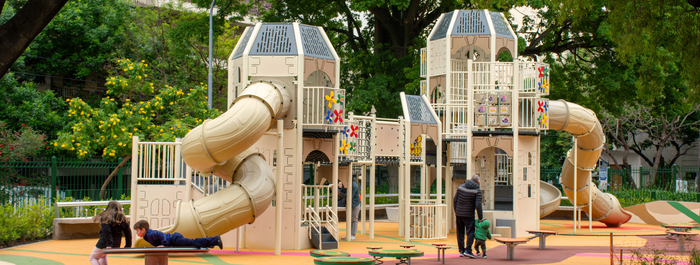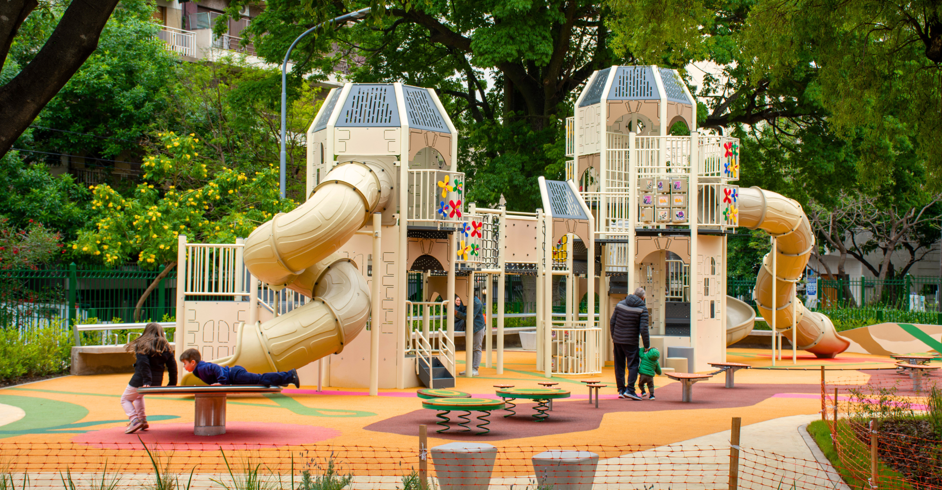 En el corazón de la Ciudad de Buenos Aires, desarrollamos una plaza temática que integra distintos sectores de juego pensados para niñas y niños de 2 a 12 años. Un espacio diseñado para acompañar el movimiento, la exploración y el encuentro, combinando juegos clásicos con propuestas contemporáneas en un entorno seguro y accesible.