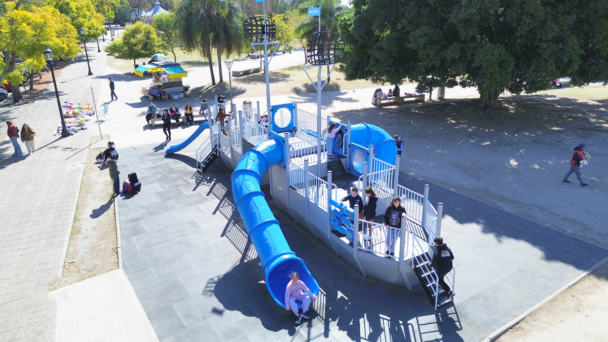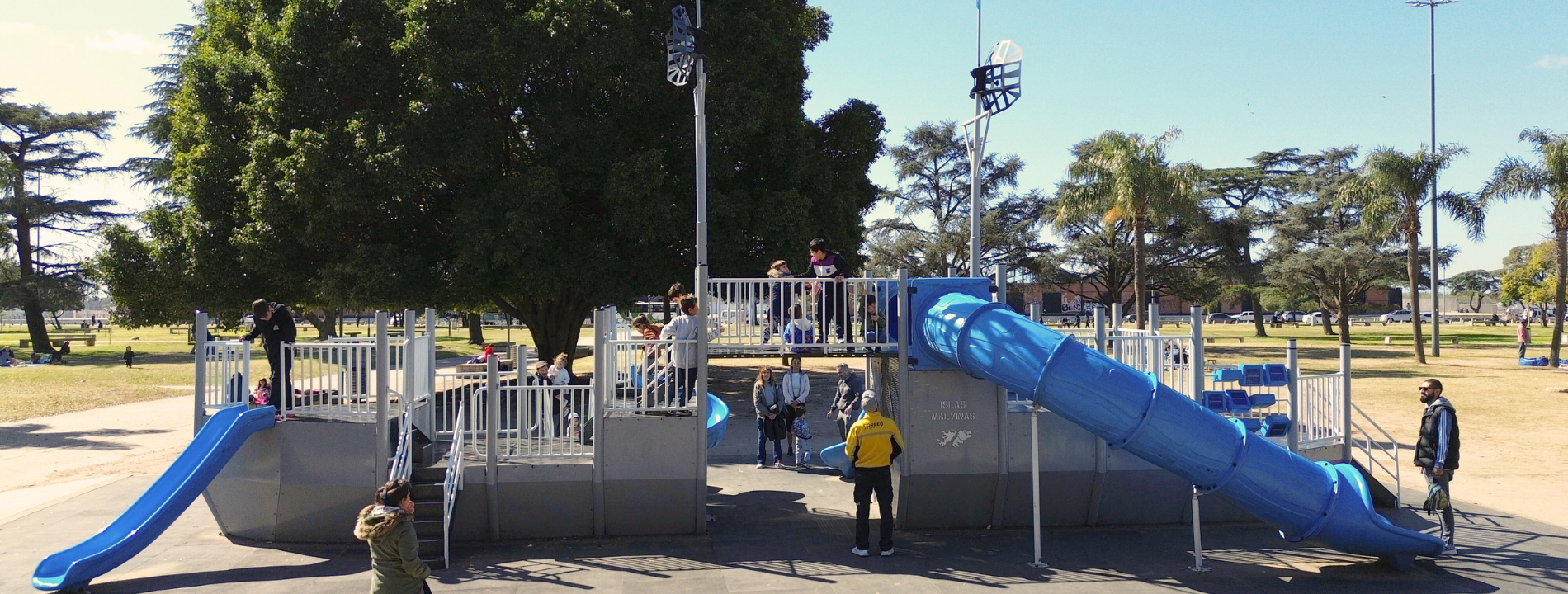 En el Parque Nacional a la Bandera, desarrollamos un juego de gran escala que rinde homenaje al Crucero ARA General Belgrano. Una propuesta lúdica con fuerte valor simbólico, que transforma el espacio público en un lugar de encuentro, memoria y juego para las infancias.