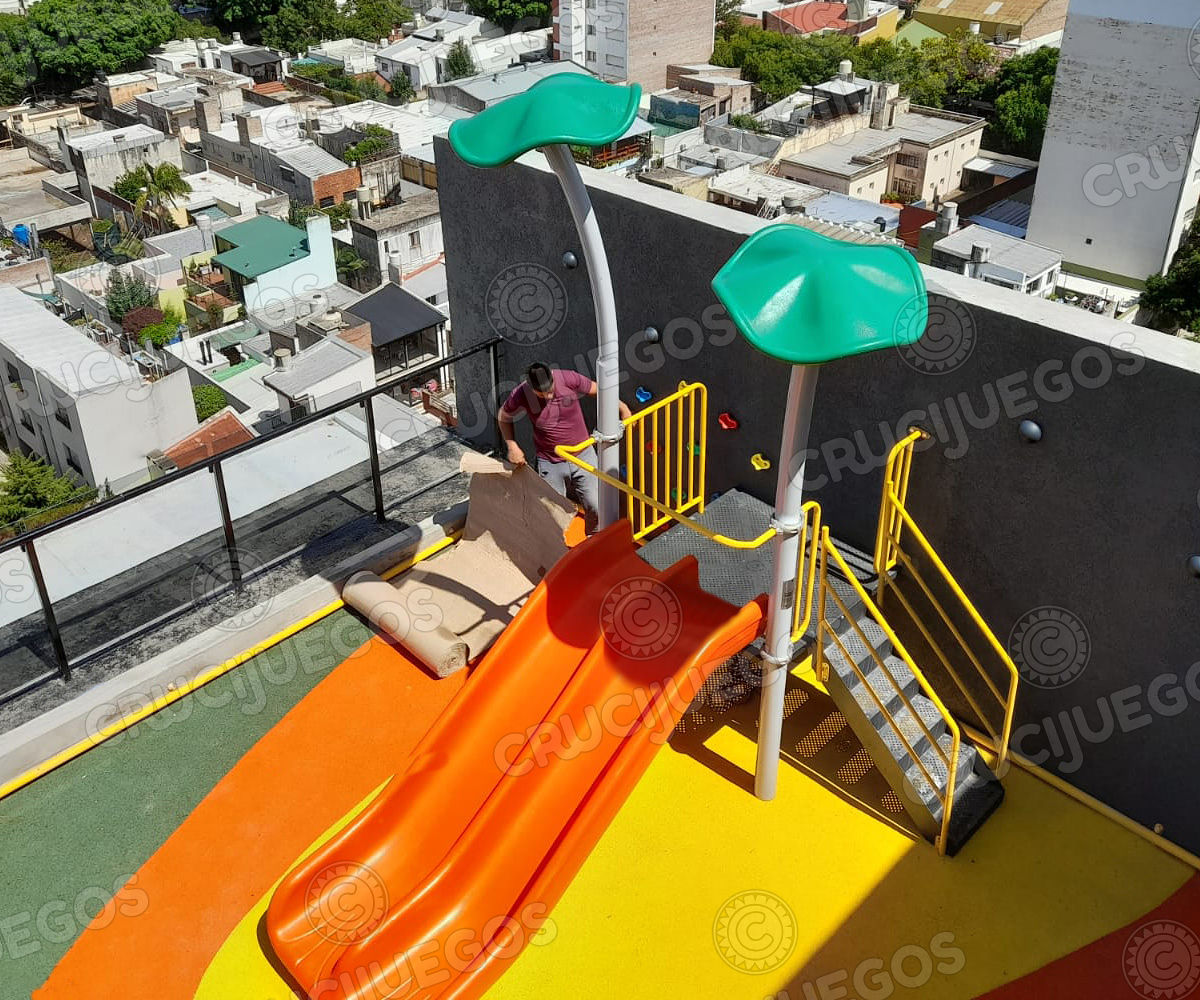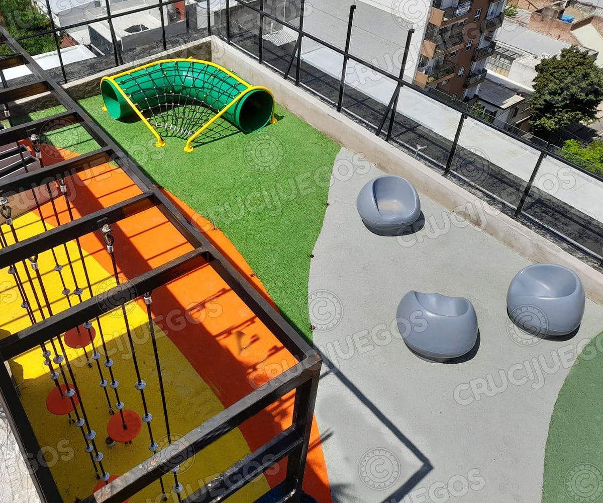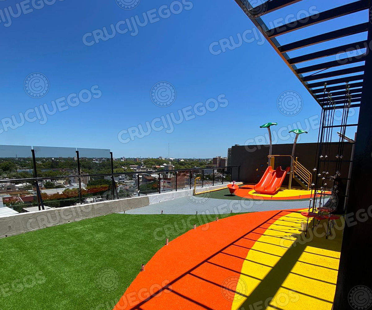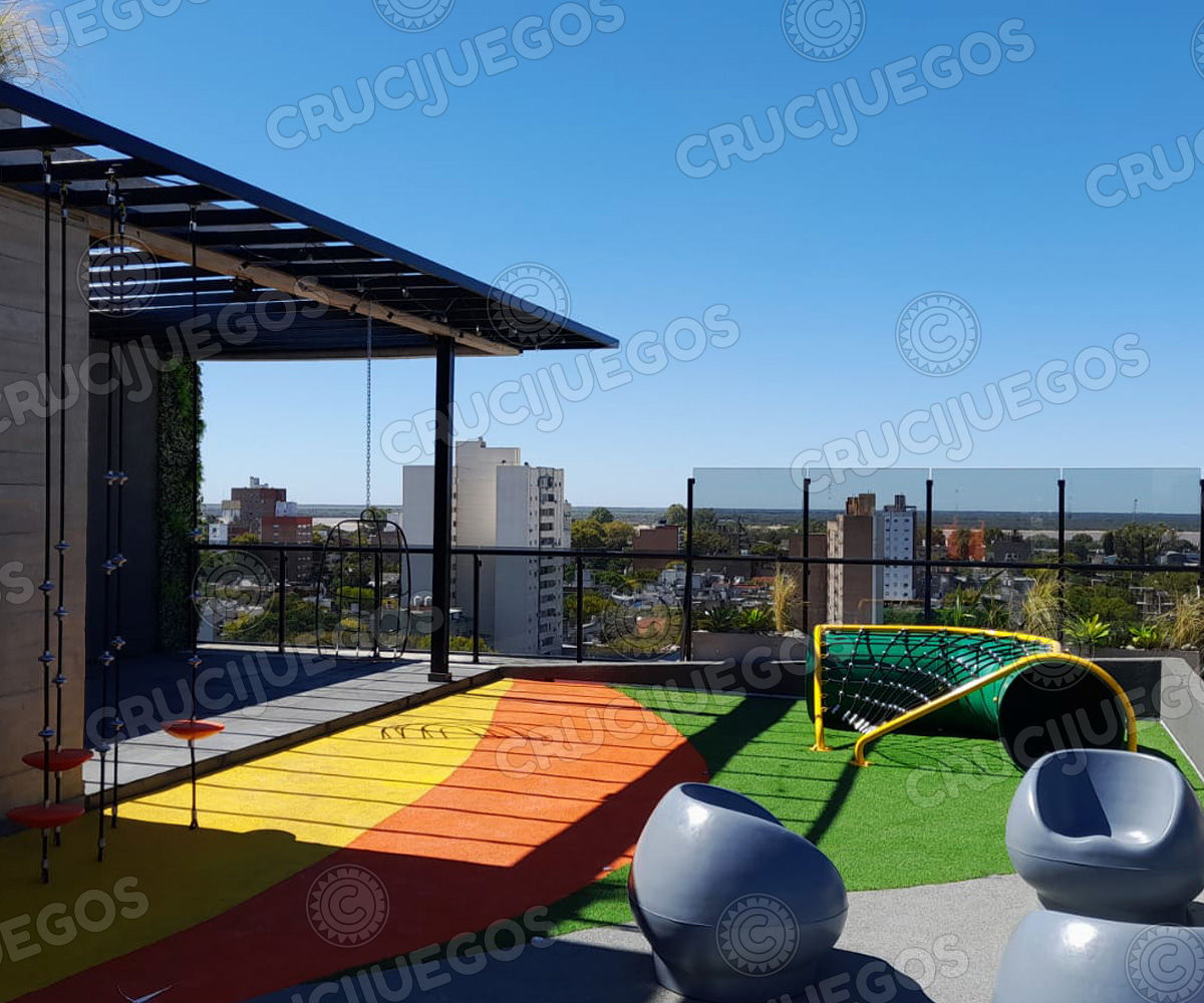 En este proyecto intervenimos una azotea de un edificio de la Ciudad de Rosario, nace de la idea de trasladar lo que uno vive en una plaza a la terraza de su casa.