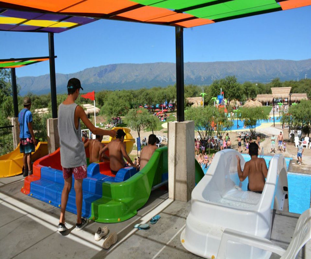 Torre central de 4m de altura, con 3 toboganes de diferentes caracteristicas: Tob. Racer, Tob Rulo y Kamikaze. Juegos tematicos para niños.