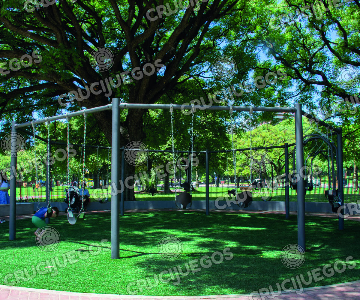 El layout del parque también incluye un sector de hamacas renovado con diseño octogonal que permite diferentes tipos de usuarios. El Pórtico RD cuenta con hamacas cintas, bebe y dúos.