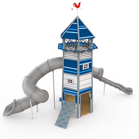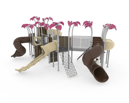 Incluye trepadores, toboganes y plataformas que promueven el ejercicio y la coordinación motriz.