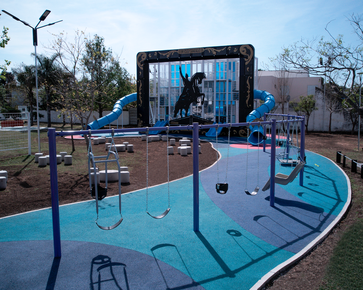 Este proyecto especial viene con sonido incorporado. “Son las huestes que prepara San Martín para luchar en San Lorenzo. Y el clarín estridente sonó a la voz del gran jefe, a la carga! Ordenó.” El Mangrullo Cuadro que se instaló en el Pulmón Verde de esta ciudad corona una plaza que da que hablar. A unas pocas cuadras del Campo de la Gloria, este imponente patio de juegos le rinde homenaje al libertador José de San Martín quien comandó las tropas del regimiento de granaderos a caballo en el histórico combate de San Lorenzo el 3 de febrero de 1813.